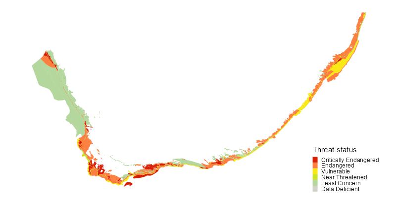 The criteria in the IUCN Red List of Ecosystems were applied to determine ecosystem threat status for the terrestrial, estuarine and marine assessments, with the results summarised here for the coastal ecosystem types. Ecosystem types were assessed as Critically Endangered, Endangered, Vulnerable (collectively referred to as threatened), Near Threatened, or Least Concern.