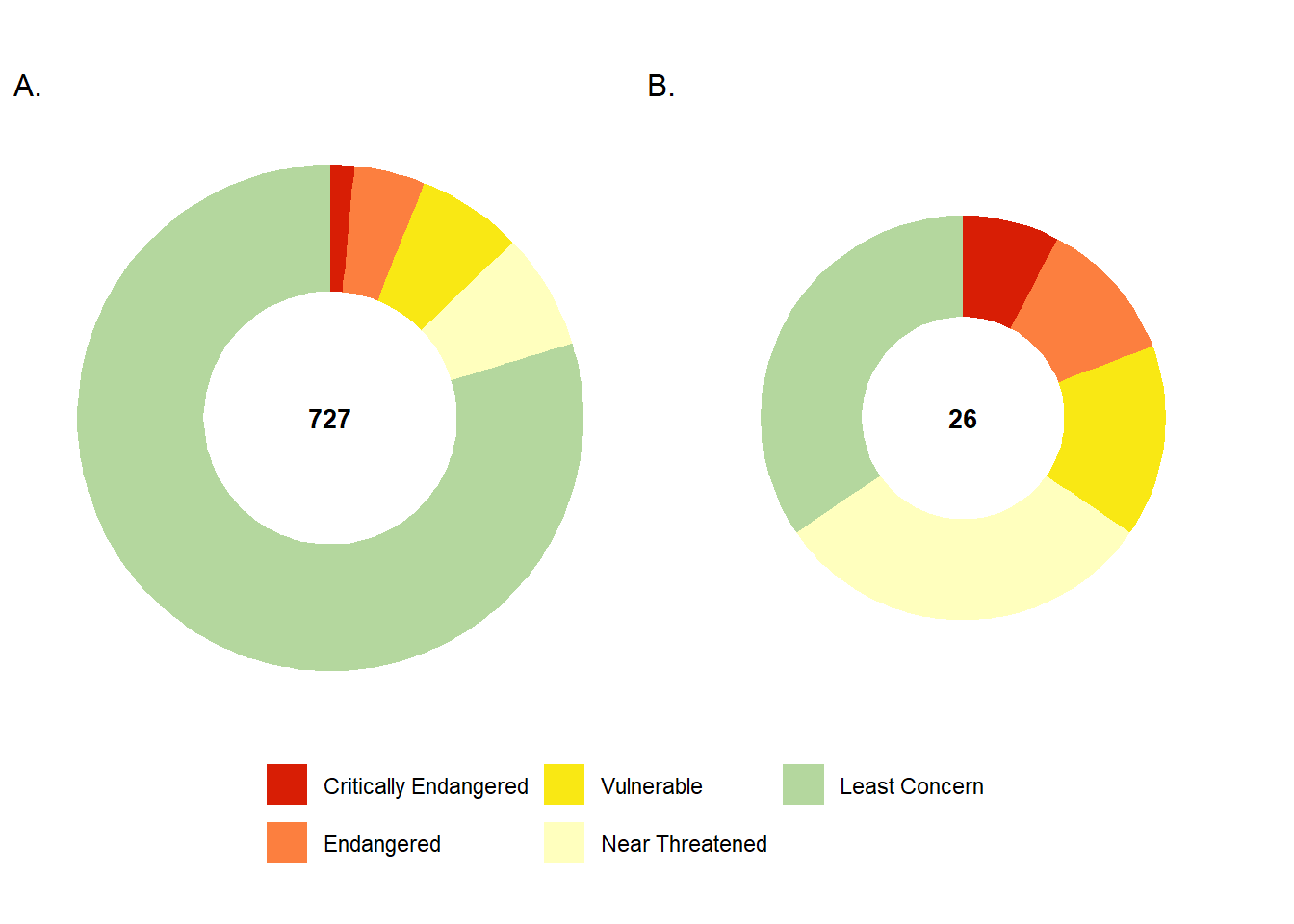 In the current assessment, 728 taxa have been evaluated, and 26 of these species are endemic to South Africa, Eswatini, and Lesotho.