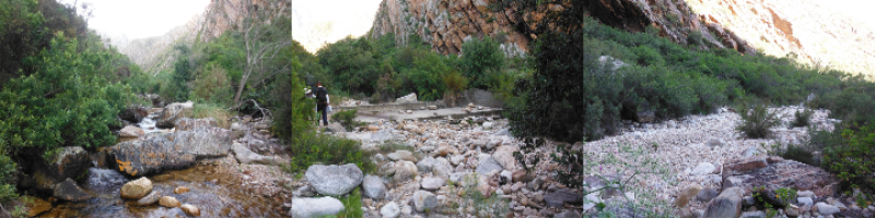 Anthropogenic pollution can be exacerbated by unsustainable water use patterns and over-abstraction of surface water sources. Complete abstraction during the dry season can result in localised extirpations, as was observed for the smallscale redfin (Pseudobarbus asper). This species was historically widespread throughout the Gouritz and Gamtoos river systems in the CFE but presently persist as highly fragmented populations in larger tributaries. Sampling results suggest that it has been lost from mainstream habitat due to the impacts of invasive piscivorous fish, while two lowland river populations downstream of Towerkop Nature Reserve are likely extirpated because of complete abstraction of surface water during the dry summer season. Lowland species such as Pseudobarbus asper are especially vulnerable to water abstraction impacts as there are often no refuge populations in upstream areas from where the species can recolonise. Examples such as these illustrate that impacts on habitat quality and quantity are significant pressures on freshwater fish and drive the highly threatened status of many taxa. Alarmingly, these pressures are only expected to worsen under future climate change predictions, especially for the CFE.