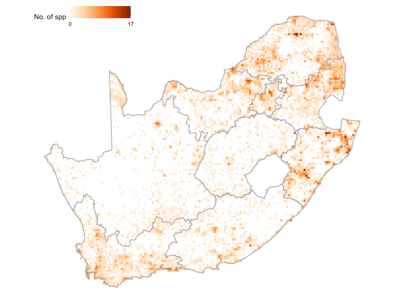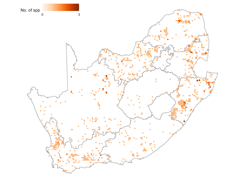 The species protection level assessment measures the contribution of South Africa’s protected area network to species persistence. It evaluates progress towards the protection of a population target for each species, set at the level of protection needed to support long-term population survival.