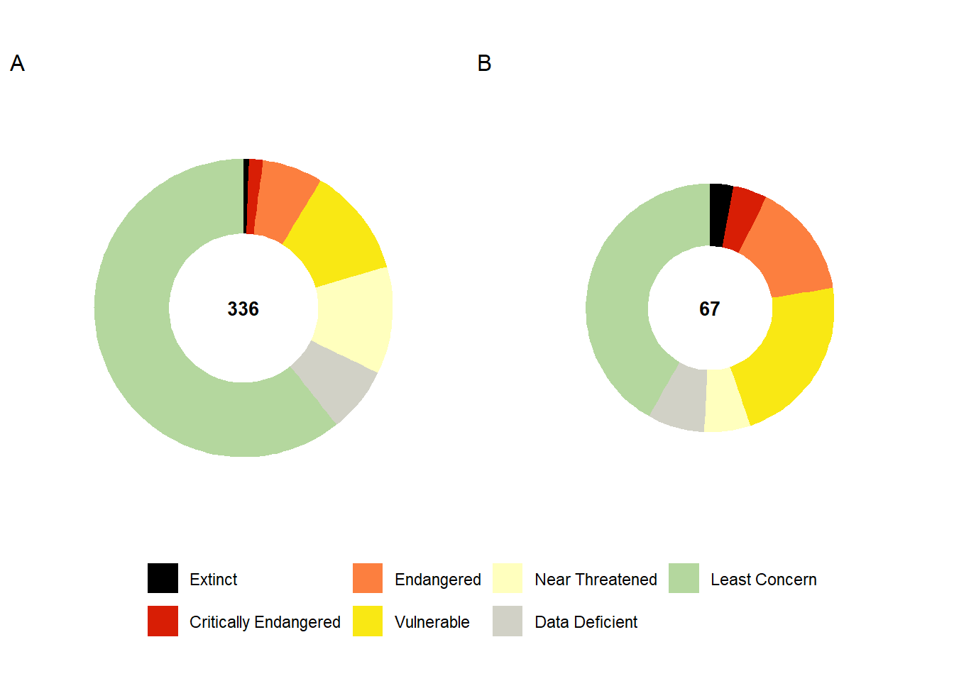 | Taxon | Extinct | Critically Endangered | Endangered | Vulnerable | Near Threatened | Data Deficient | Least Concern | Total |