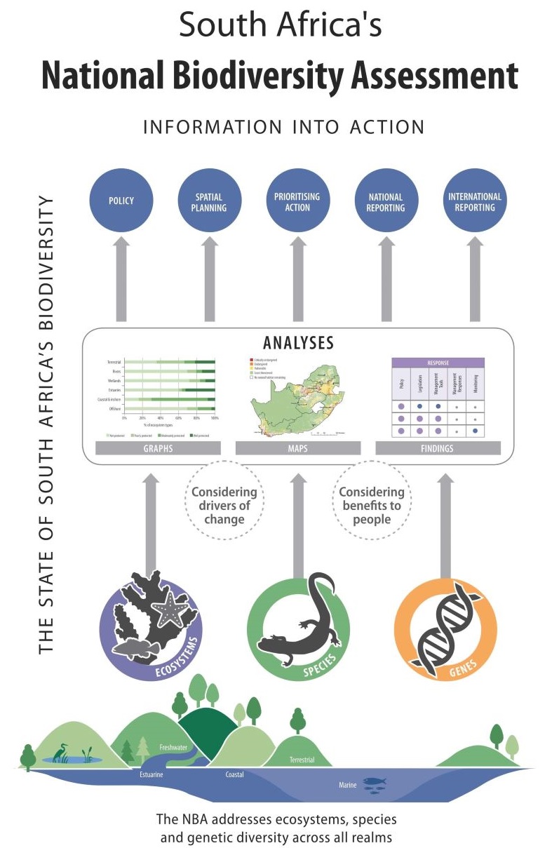 Read more about the origins, context, goals, form, scope and approach of the NBA in the National Biodiversity Assessment: Contextual and Operational Framework.