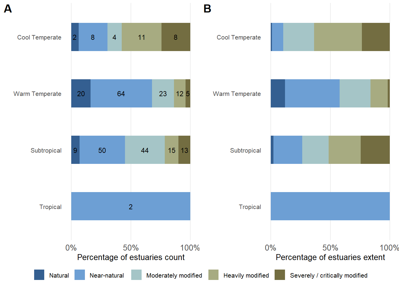 | Warm Temperate | No. estuaries | 20 | 64 | 23 | 12 | 5 |