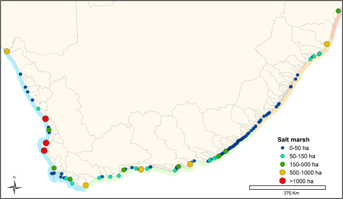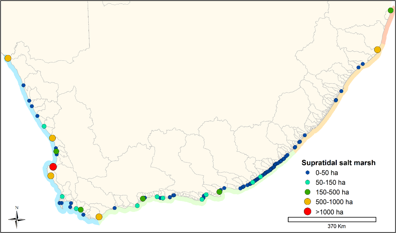 Higher species richness in the Cool and Warm Temperate zones can be attributed to the large supratidal salt marsh areas and the addition of many fringing / transitional species in these habitats. Climate change is a future pressure for these sensitive habitats and anthropogenic pressures need to be managed.