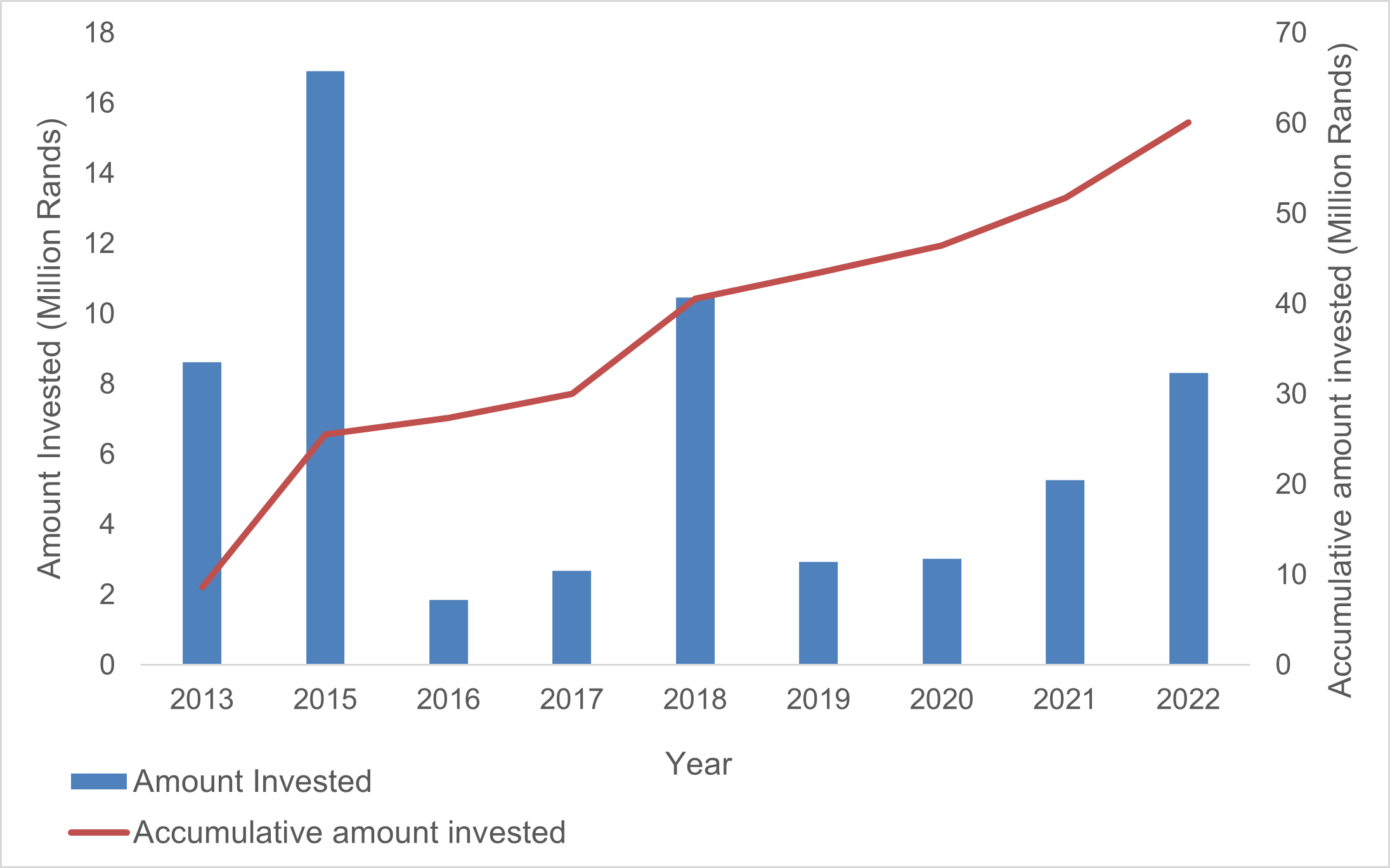 Between 2013 and 2022, the FBIP funded 124 DNA barcoding-related projects totalling over R60 million (Figure 1). These efforts align with both international and national obligations, including the United Nations Convention on Biological Diversity (CBD), the Intergovernmental Platform on Biodiversity and Ecosystem Services (IPBES), and South Africa’s National Environmental Management: Biodiversity Act (NEM:BA).