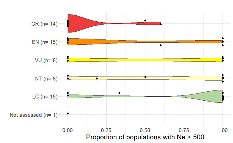 In line with these principles, South Africa has adopted four genetic indicators from the Kunming-Montreal Global Biodiversity Framework, which can be based on direct genetic data or on proxies (when genetic data are not available; namely the Ne 500 and PM indicators).
