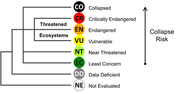 a set of ordinal categories that rank ecosystems according to their relative risk of collapse.