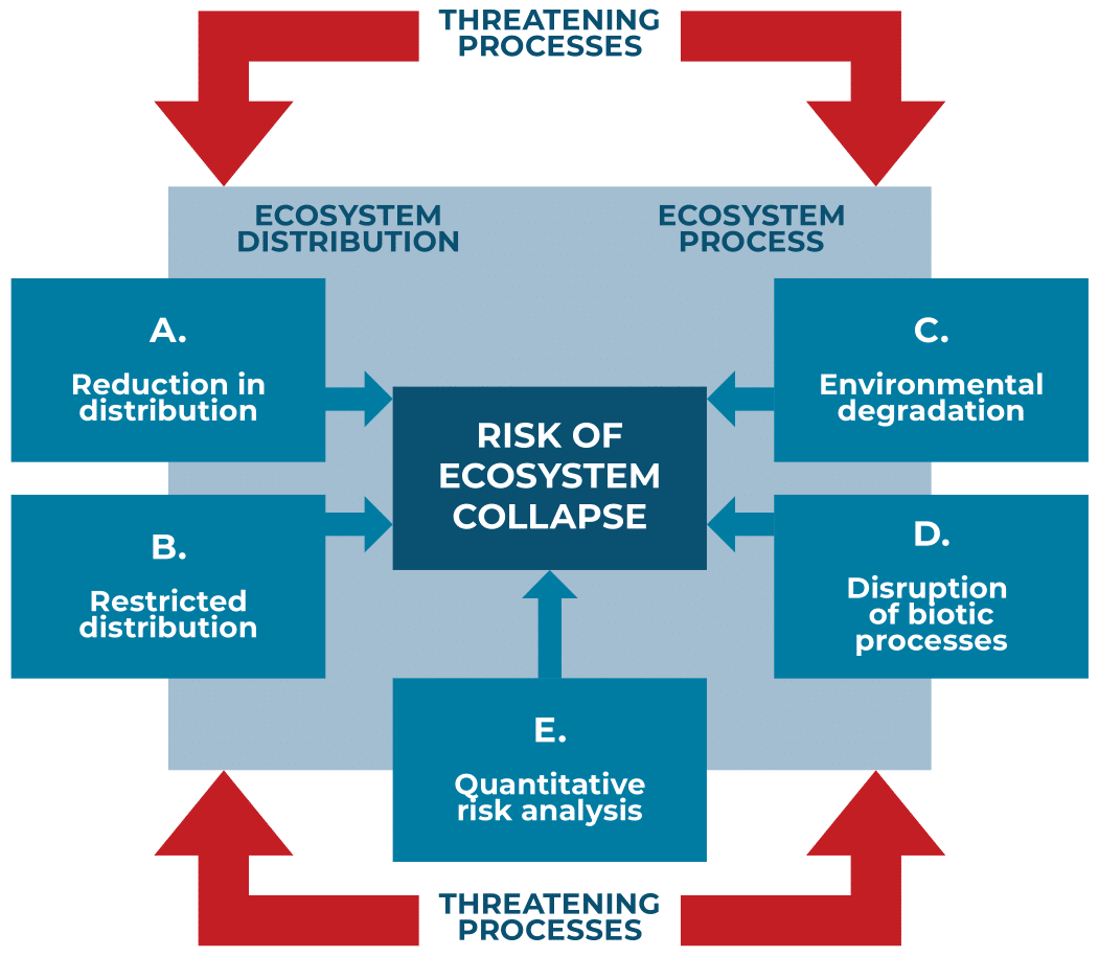 a set of spatial and functional criteria that describe the different ways in which ecosystems may become threatened;