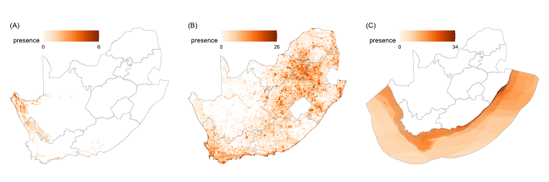 Increases in extinction risk are evident for most groups, but a marked increase in rate of extinction since the last assessment is evident from the change in slope of declines for reptiles, birds, mammals and plants (Figure 1). Increases in threat status for birds have largely been due to freshwater birds impacted by increasing levels of pollution and other forms of habitat degradation, while the main drivers of declines for mammals, plants and reptiles have been climate change and loss of habitat for mining and renewable energy developments. Most plants that have been uplisted due to increasing levels of extinction risk are found in the Northern Cape (Figure 2). The province was severely impacted by the drought over the past decade, and is experiencing ongoing pressure from mining, succulent poaching and renewable energy developments. The two groups at highest risk of extinction are freshwater fishes and cartilaginous fishes. Sharks, rays and chimaeras are included on South Africa’s RLI for the first time, with the majority having wide ranges that extend outside South African territory. Many of these cartilaginous fishes are long-lived, have slow growth and low reproductive output, and many are declining across their ranges due to overfishing (including from recreational fisheries and as bycatch from industrial fisheries), lethal bather protection measures and habitat degradation. Half of South Africa’s freshwater fishes are endemic, with many concentrated in Western Cape river systems. While only due for reassessment in 2026, the declining status of rivers and dwindling resources available for management actions where many of these species are concentrated likely means that they will continue on a declining trajectory.