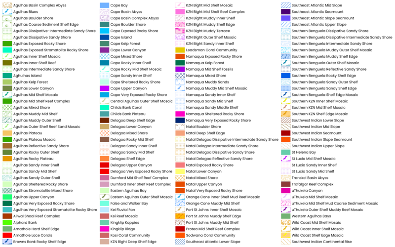 The organizations, departments and funders of all contributors to Sink et al. 2023 are acknowledged for their support. The National Marine Ecosystem Committee and Network, the Marine Emerging Researchers Task team, the National Ecosystem Classification Committees and the National Marine Biodiversity Scientific Working Group are thanked for their invaluable technical expertise and guidance. We acknowledge Megan van der Bank for her work in co-ordination and support of the marine ecosystem network and Prideel Majiedt for her technical support and policy insights.
