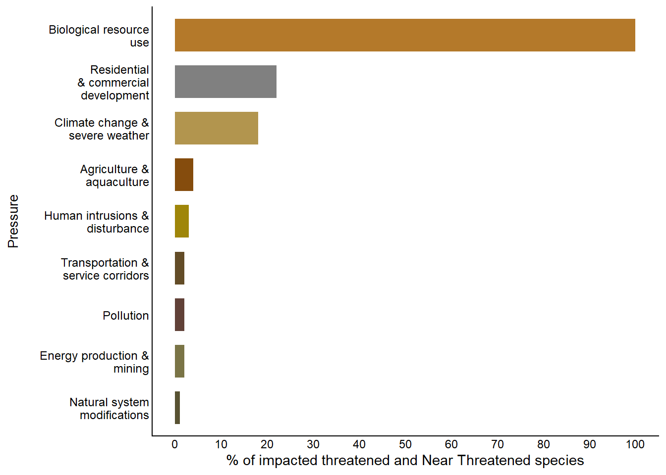 | Species | Fisheries | Habitat loss and degradation | Climate change |
