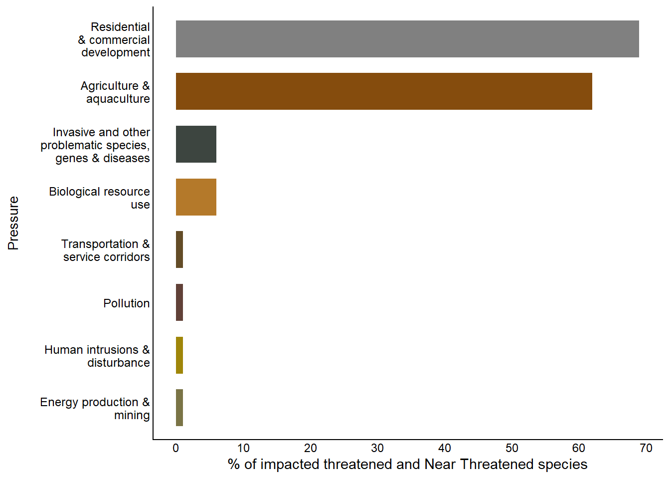 Most species (1 419 spp., 64%) are widely distributed with no known threats and are assessed as Least Concern.