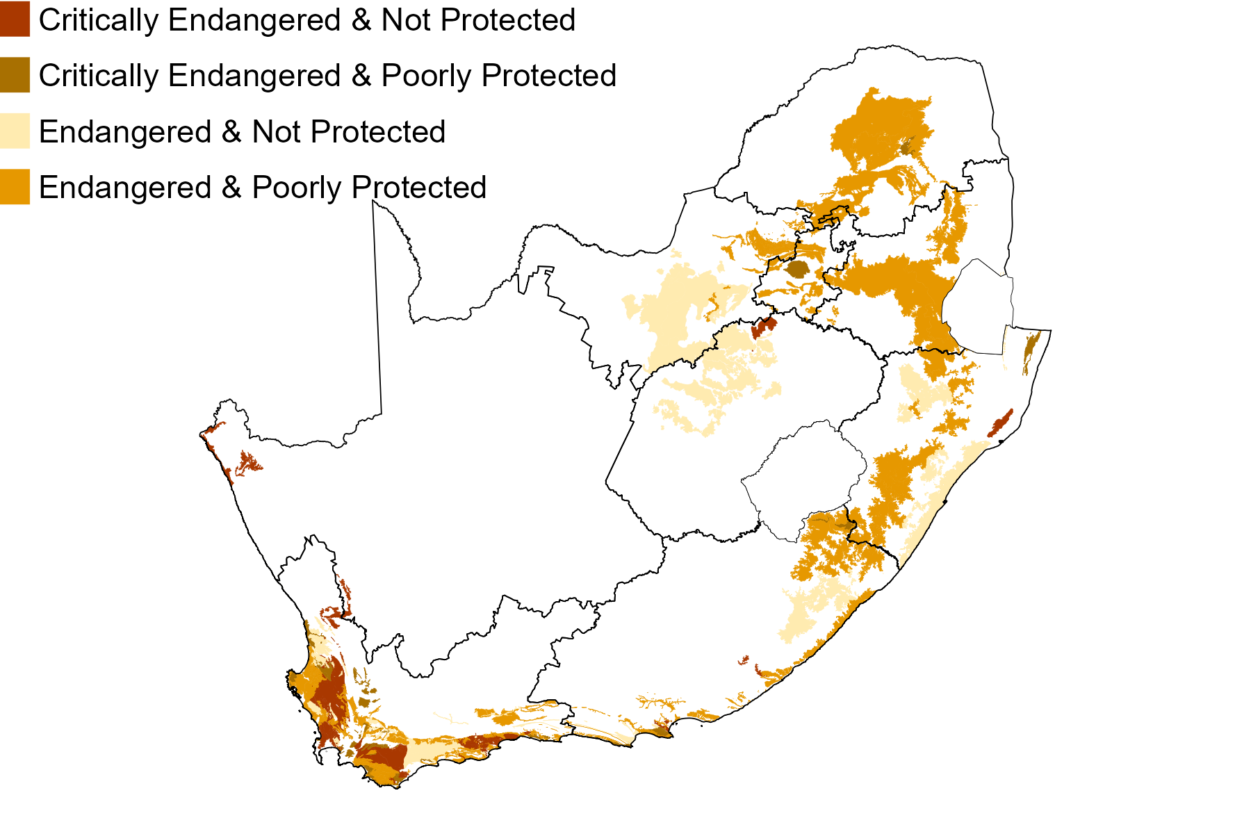 Skowno, A.L., Monyeki, M.S., & Khatieb, S. 2025. Intersection of ecosystem threat status and protection level: Terrestrial realm. National Biodiversity Assessment 2025. South African National Biodiversity Institute. http://nba.sanbi.org.za/.